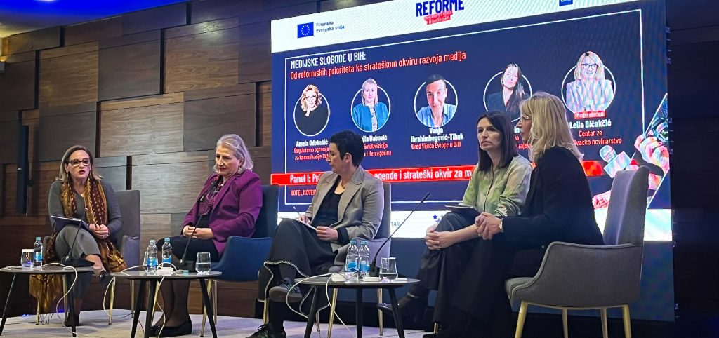 Lejla Fišek i Sedina Zimić prisustvovale su konferenciji „Medijske slobode u BiH: Od reformskih prioriteta ka strateškom okviru razvoja medija“, koja je okupila relevantne aktere u oblasti medija i slobode izražavanja. Tokom konferencije imale su priliku upoznati se s ključnim nalazima studije o stanju medijskih sloboda.